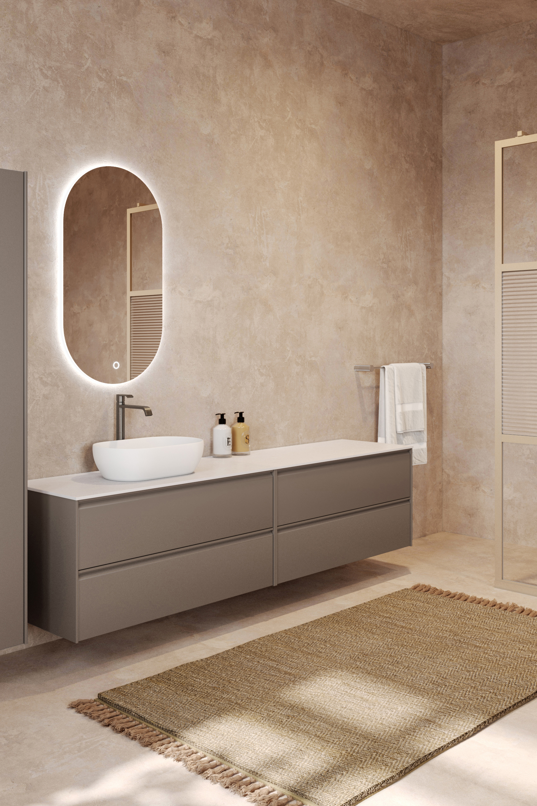 Double cabinet with oval countertop basin