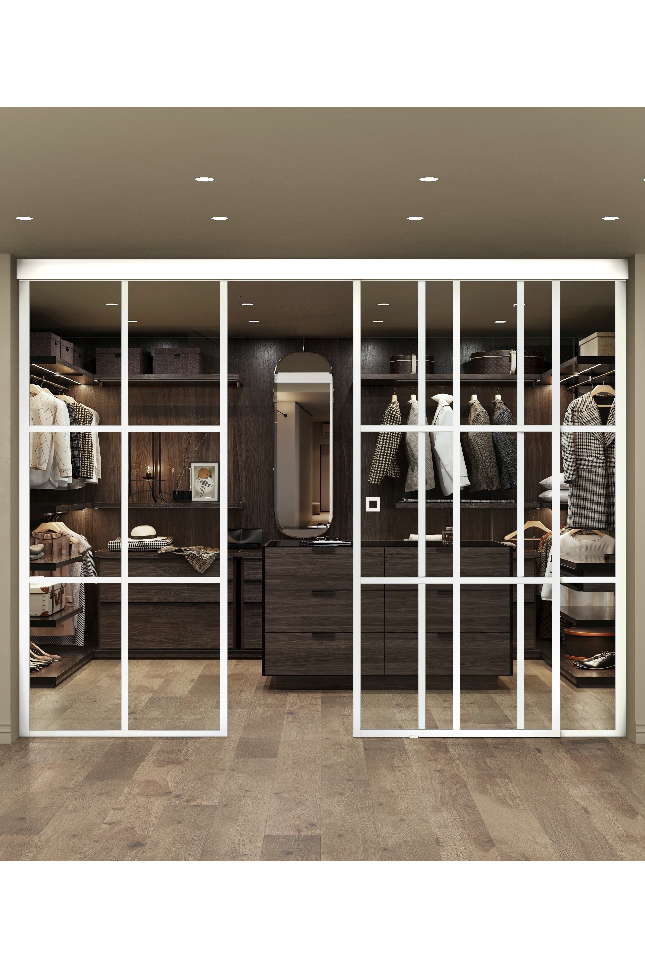 The sliding door with two fixed panels glass wall consists of fixed wall panels,a sliding door panel and ceiling mounted sliding mechanism. Sliding door fixture takes up very little space in the room, a quality sliding mechanism and a floor guide fitting provides a smooth and safe door movement. The doors are equipped with soft closing mechanism which cushions the closing and gently pulls the door into position.